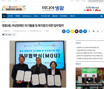언론기사- 영종2동, 여성장애인 자기돌봄 및 복지증진 위한 업무협약