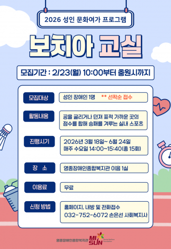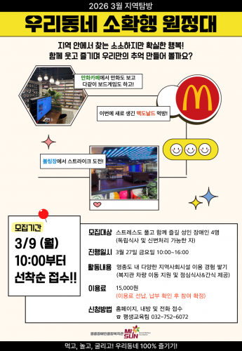 2026. 4. 8.(수)~2026. 6. 24.(수) 14:00~15:30