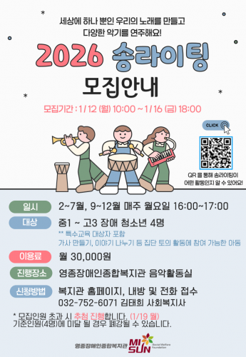 초4~초6 장애 아동 4명 / 중1~중3 장애 청소년 5명