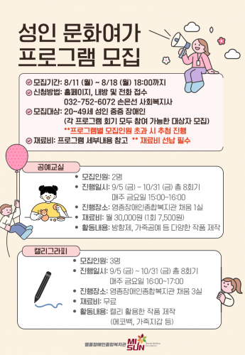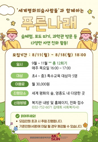 영종도 내 거주 등록 발달장애인과 가족(20가정)